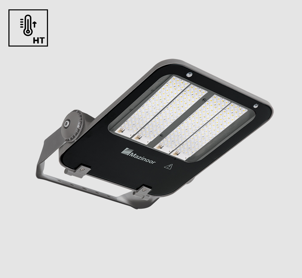 اپتيلوكس - چراغ LED ضد نم و غبار پروژكتوري HT (IP66) با توان 140 وات 23000 لومن و دماي رنگ نور 4000 كلوين و پخش نور متقارن تيز - طوسي