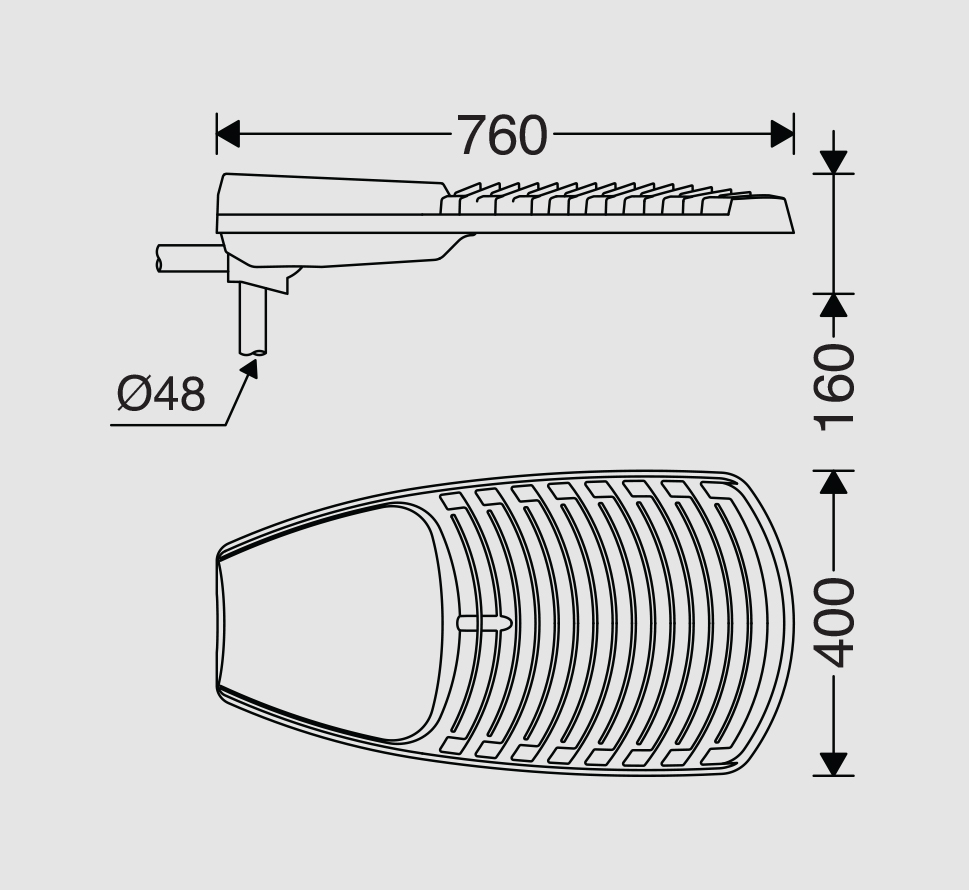 هليوس L - چراغ LED خياباني (IP66) با توان 250 وات 33000 لومن و دماي رنگ نور 5000 كلوين - طوسي