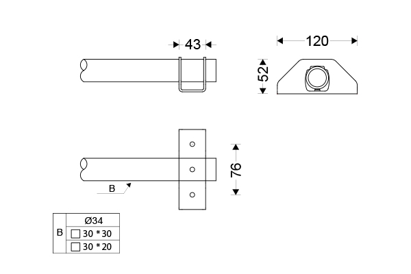 براكت لوله و قوطي 3 سانتي متر پلاريس PDP3-Bracket-S