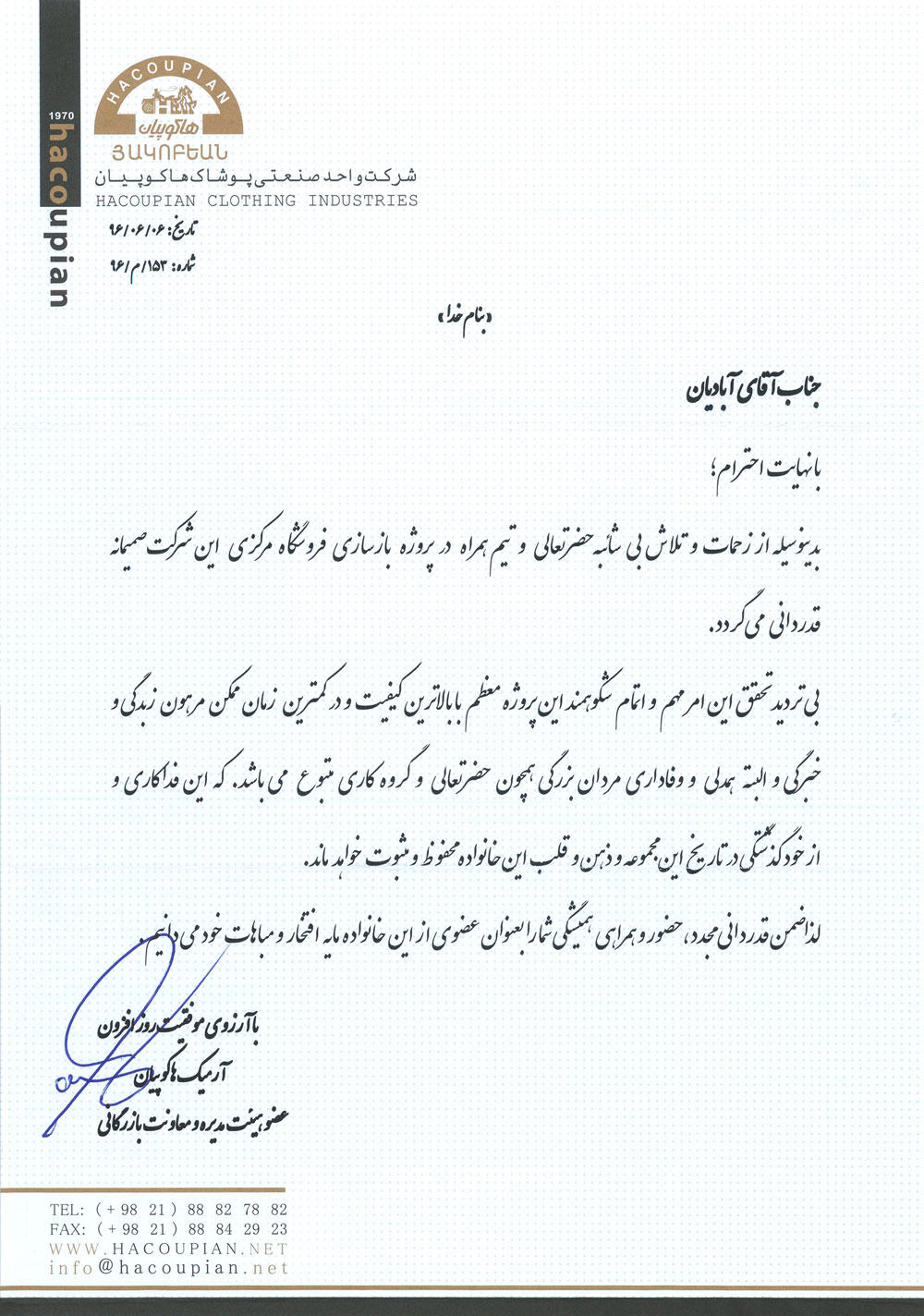 شرکت واحد صنعتی پوشاک هاکوپیان