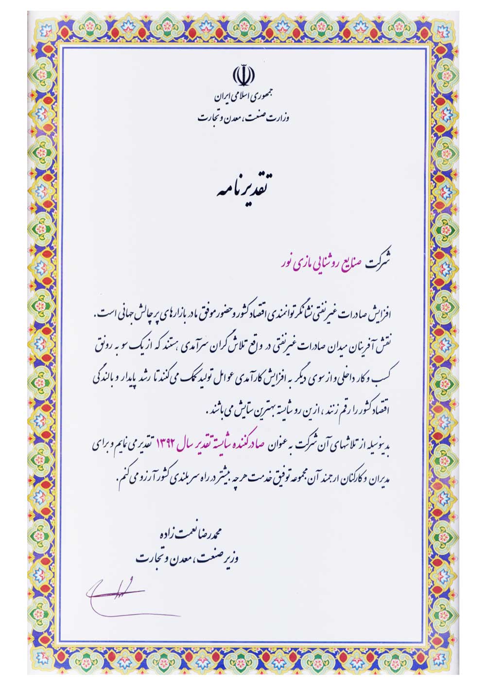 تقديرنامه نمايشگاه عسلويه سال 1400