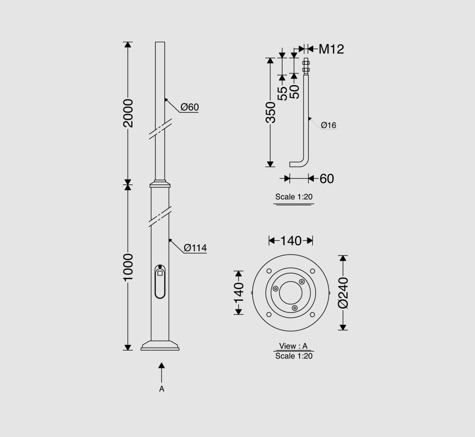 پايه چراغ پاركي 3 متري (با فيوز) - سفيد
