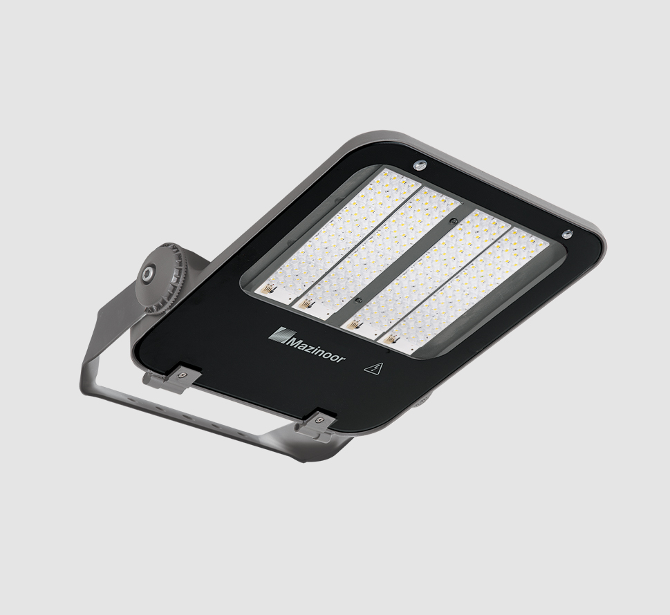 اپتيلوكس - چراغ LED ضد نم و غبار پروژكتوري (IP66) با توان 200 وات 27000 لومن ، دماي رنگ نور 4000 كلوين و پخش نور متقارن تيز - طوسي