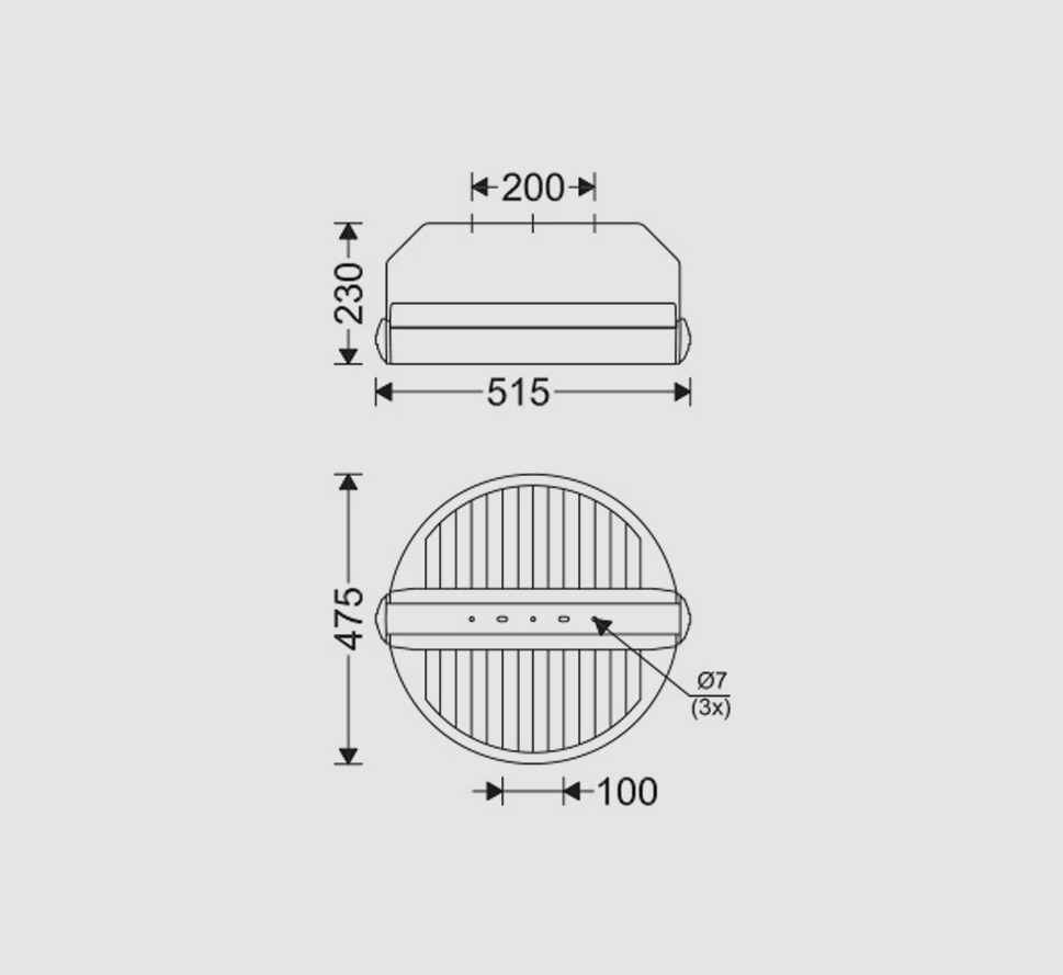 ساترن - چراغ LED تونلي (IP66) با توان 240 وات 36000 لومن و دماي رنگ نور 4000 كلوين و پخش نور نامتقارن و قابليت نصب در وسط تونل– طوسي
