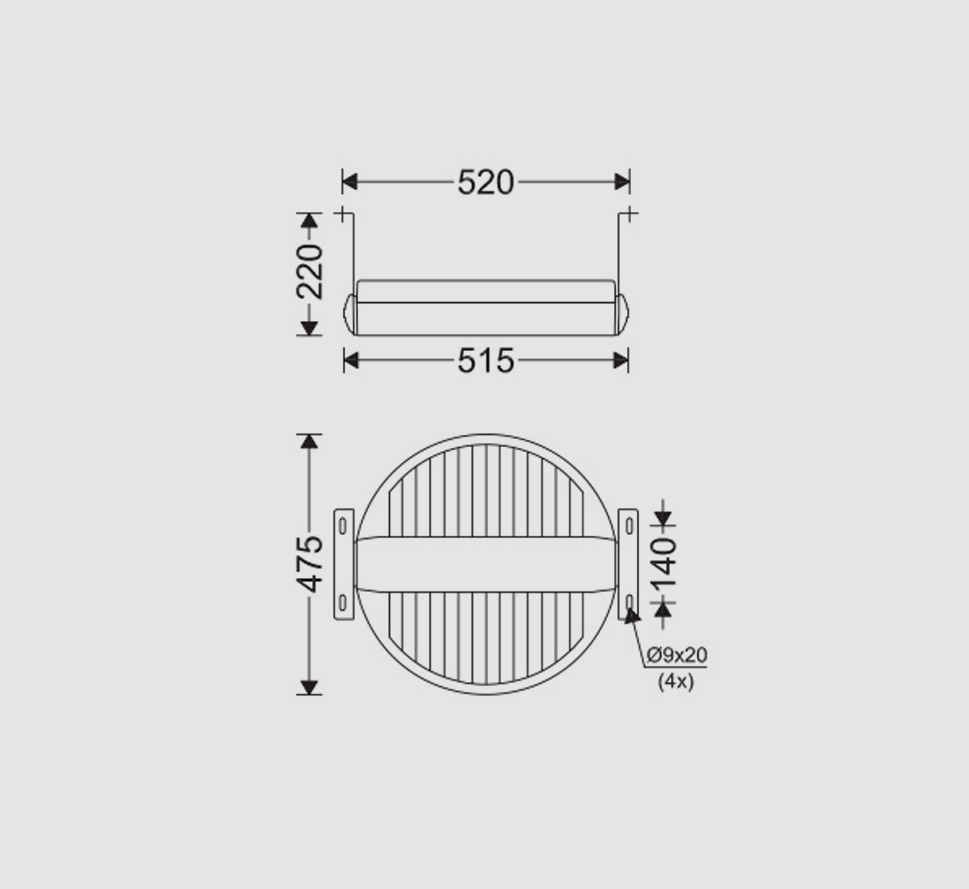 ساترن - چراغ LED تونلي (IP66) با توان 240 وات 36000 لومن و دماي رنگ نور 4000 كلوين و پخش نور متقارن باز و قابليت نصب در كنار تونل– طوسي