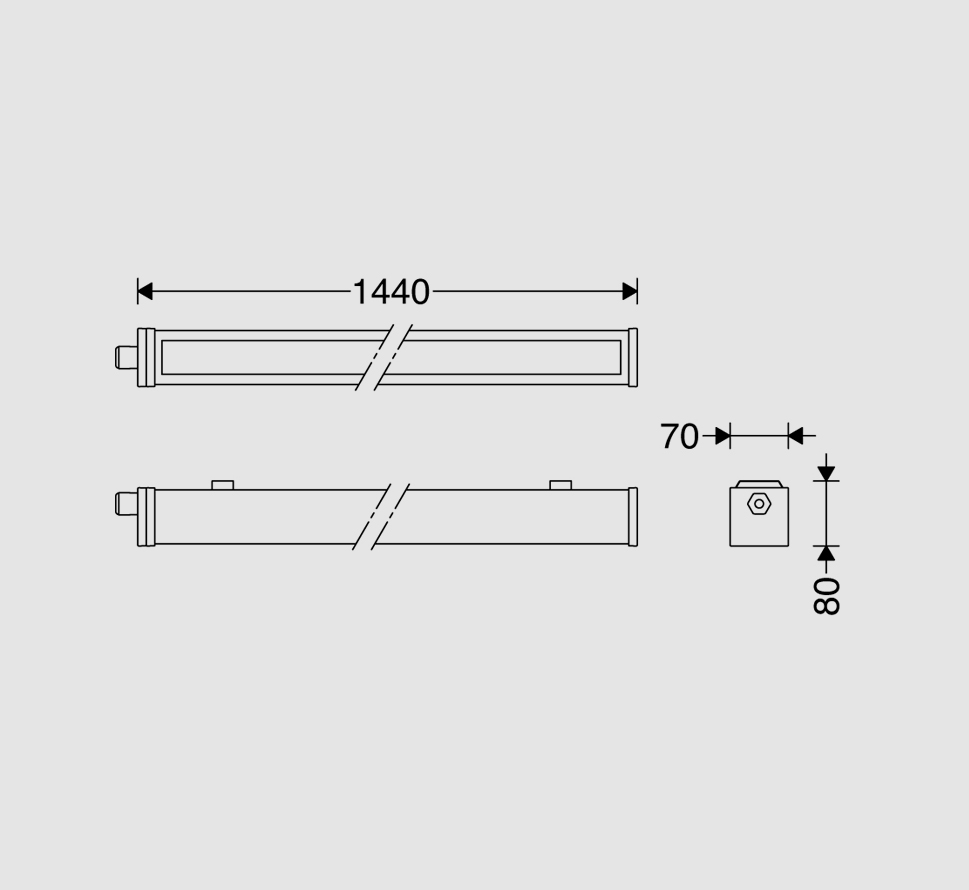 سيليوم - چراغ LED ضد نم و غبار خطي روكار (IP66) با توان 64 وات 8200 لومن ، دماي رنگ نور 6500 كلوين به طول 145 سانتي متر ، لنز و پخش نور DA
