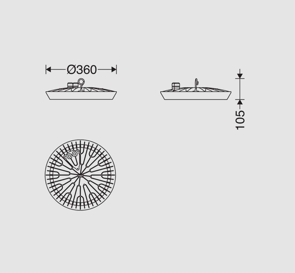 لديسان - چراغ LED ضد نم و غبار (IP65) با توان 150 وات، 17500 لومن دماي رنگ نور 4000 كلوين، پخش نور متقارن باز و ماژول برق مستقيم – طوسي