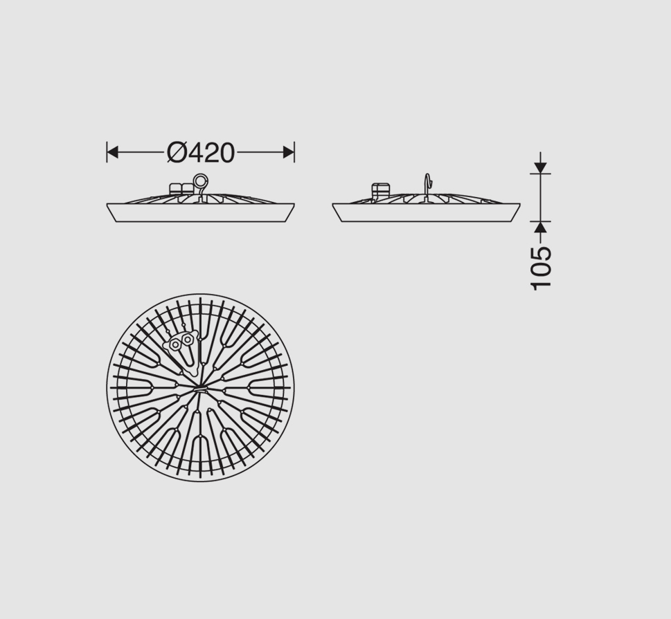 لديسان - چراغ LED ضد نم و غبار (IP65) با توان 200 وات، 24000 لومن دماي رنگ نور 4000 كلوين، پخش نور متقارن باز و ماژول برق مستقيم – طوسي