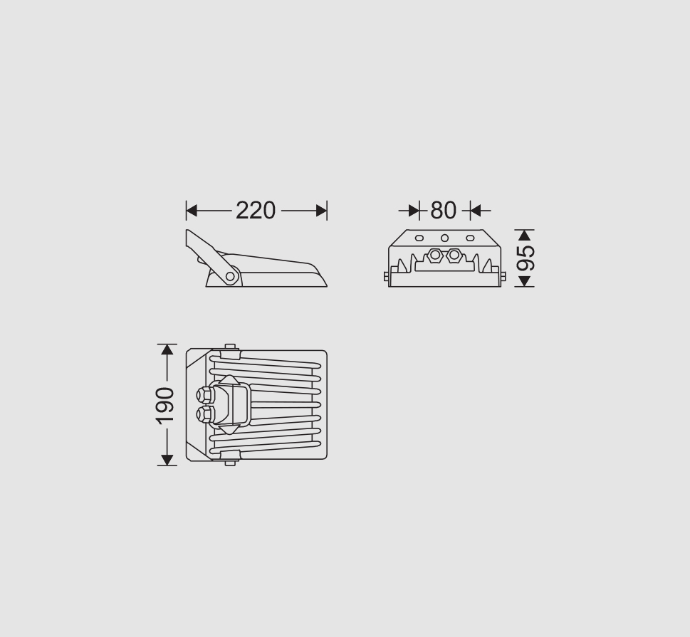 پلاريس - چراغ LED پروژكتوري (IP65) با توان 40 وات، 3800 لومن دماي رنگ نور 4000 كلوين و پخش نور متقارن تيز - طوسي