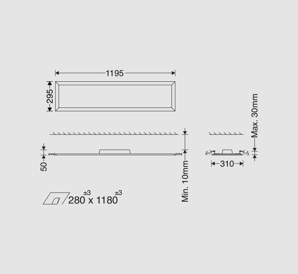 - ابعاد(ميليمتر): 1195x295x12