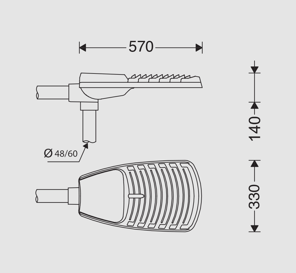 هليوس M - چراغ LED خياباني (IP66) با توان 150 وات 21000 لومن و دماي رنگ نور 3000 كلوين - طوسي