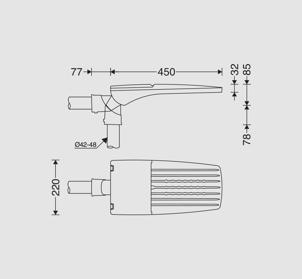 آستريا M - چراغ LED معابري(IP66) با توان 80 وات 10500 لومن و دماي رنگ نور 3000 كلوين - طوسي