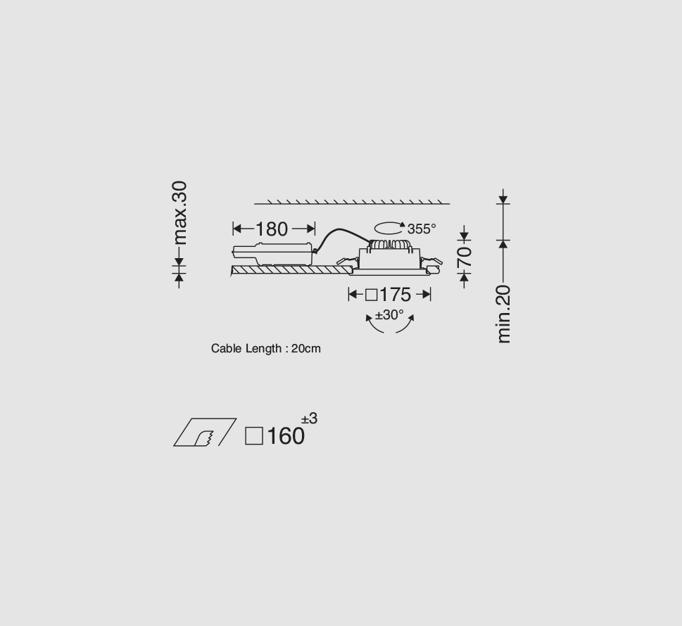 آدنا - چراغ LED دانلايت تك خانه توكار 30 وات 3400 لومن با دماي رنگ نور 6500 كلوين، به قطر 9 سانتي متر و لنز M – مشكي