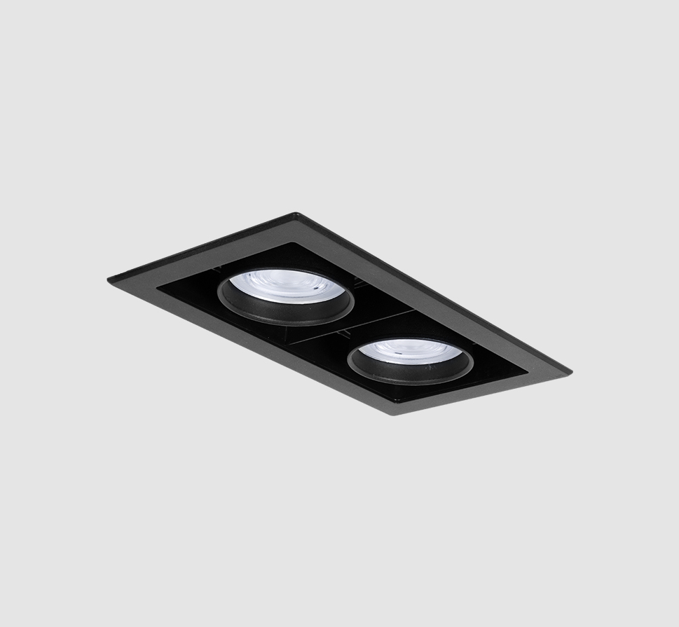 آدنا - چراغ LED مولتي دانلايت دو خانه توكار 60 وات 6700 لومن با دماي رنگ نور 6500 كلوين، به قطر 9 سانتي متر و لنز M – مشكي