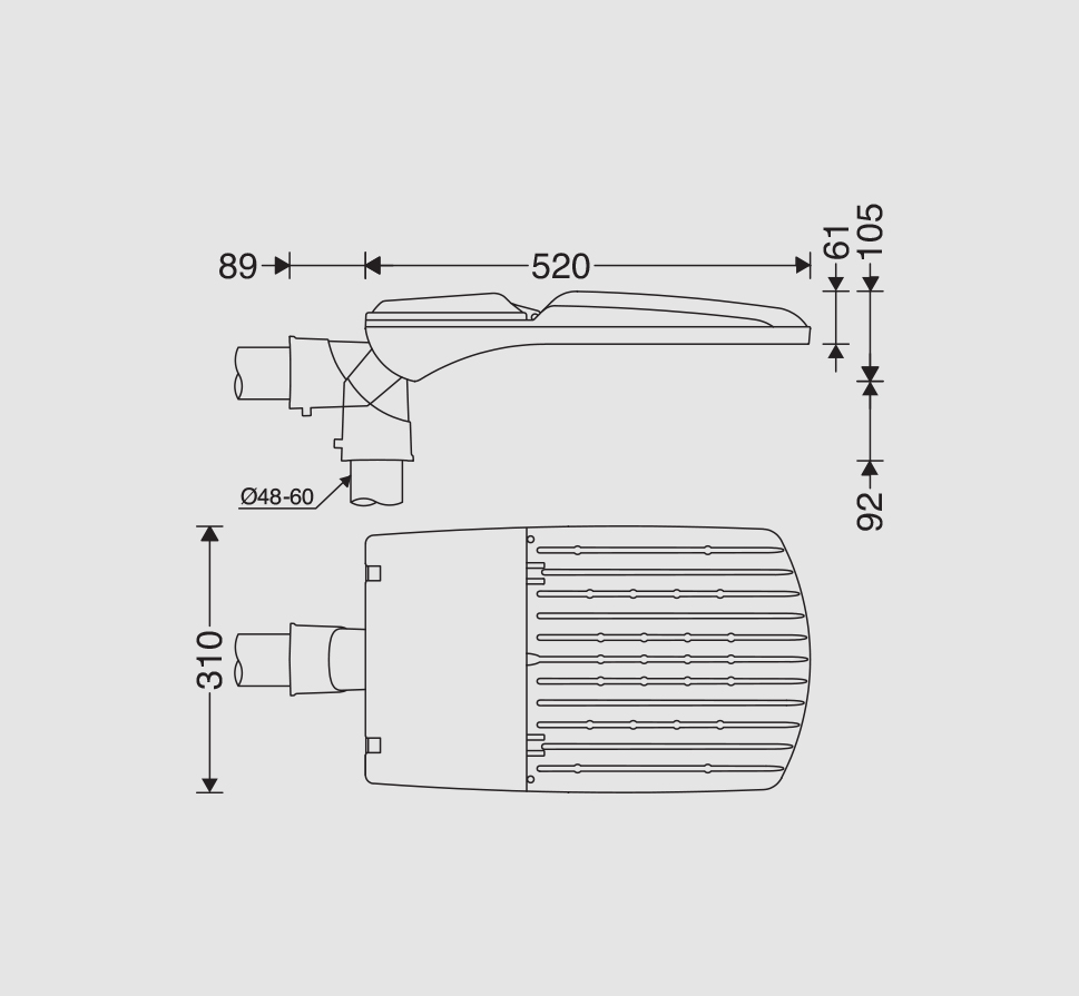 آستريا XL - چراغ LED معابري(IP66) با توان 240 وات 33000 لومن و دماي رنگ نور 4000 كلوين - طوسي
