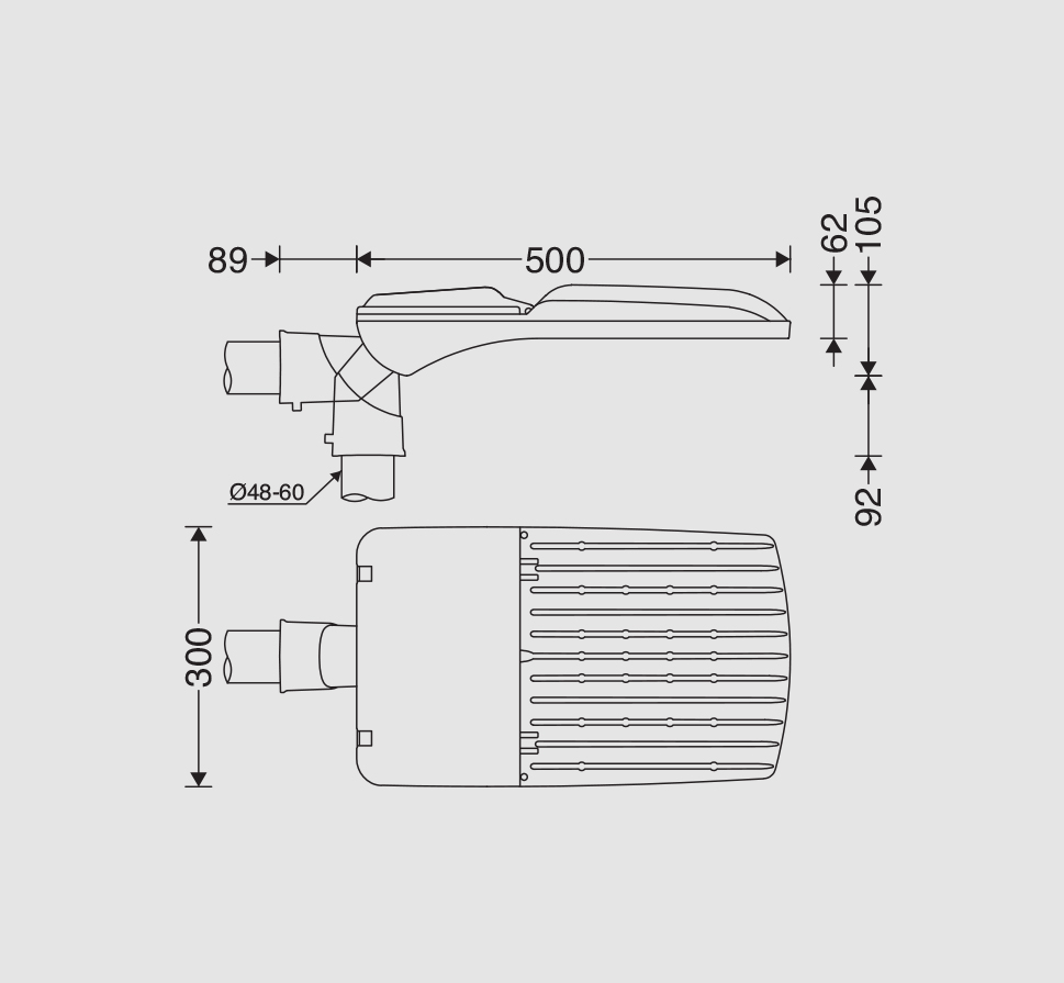 ليبرا XL - چراغ LED خياباني (IP66) با توان 250 وات 32000 لومن و دماي رنگ نور 3000 كلوين - طوسي
