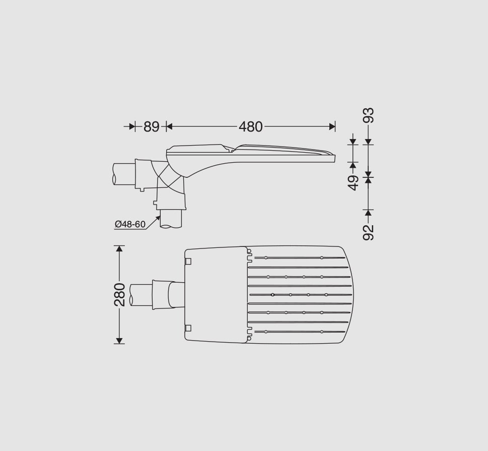 آستريا L - چراغ LED خياباني با IP66، توان 150 وات، 21000 لومن و دماي رنگ نور 5000 كلوين - طوسي